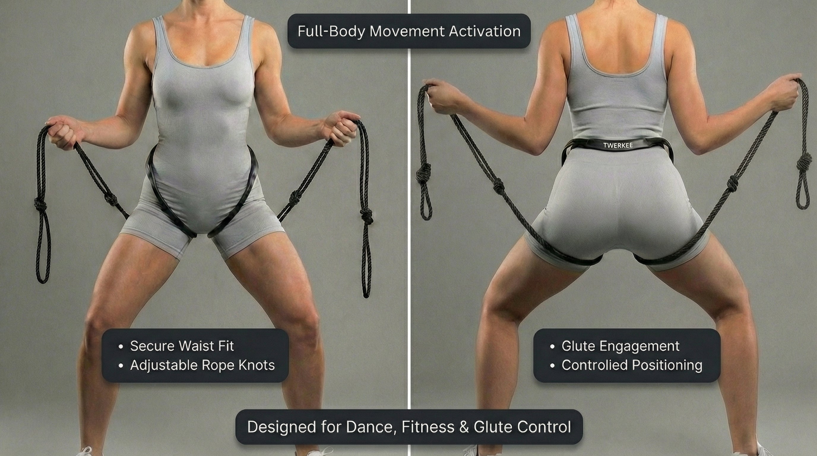 The Twerkee™ activates and enhances hip and glute movement through channeled pull-cords. For both beginners and experienced users, it amplifies your movement and their response.